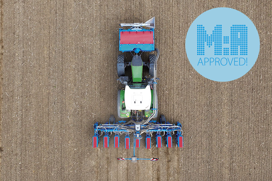 Die 8-reihige Einzelkornsämaschine Azurit 10 ist für diverse Saatgutarten einsetzbar. Für die Düngung kann sie sowohl mit einem Microgranulatstreuer als auch mit zahlreichen Geräten für die Unterfußdüngung kombiniert werden.