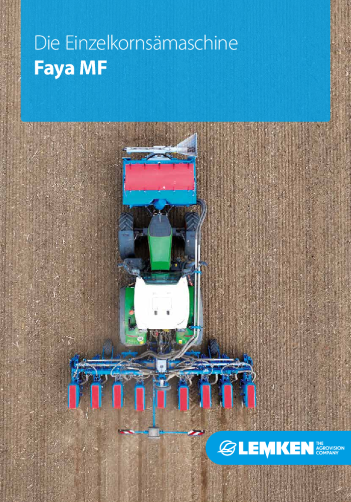 Mit iQblue seed steht für die Faya MF das moderne, ISOBUS-basierte Bedienkonzept von LEMKEN zur Verfügung, das auch bei anderen Sämaschinen zum Einsatz kommt. Dank des einheitlichen Designs findet sich der Fahrer intuitiv zurecht. Die Steuerung erfolgt wahlweise über ein LEMKEN CCI-Terminal oder jedes andere Universal-ISOBUS-Terminal.