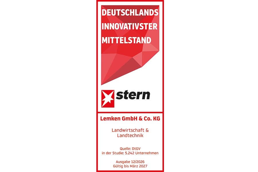 Das ergab ein Ranking des STERN und der Deutschen Gesellschaft für Verbraucherstudien (DtGV). In der Gesamtwertung erreichte LEMKEN einen hervorragenden 10. Platz – und zählt damit nicht nur in der Kategorie Landwirtschaft und Landtechnik, sondern branchenübergreifend zu den innovativsten mittelständischen Unternehmen des Landes.