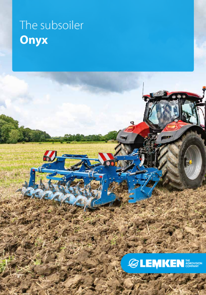 The LEMKEN Onyx is designed for high traction forces – up to 133 hp per metre – and impresses with its robust construction and precise technology. Precise working depth control and the stable frame construction enable reliable deep loosening to 60 cm. Compaction is effectively broken up – for improved soil structure and optimal conditions in every crop rotation, on light and heavy soils.