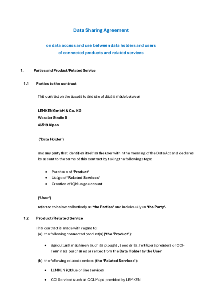 Pre-contractual information on the EU Data Act from LEMKEN GmbH & Co. KG