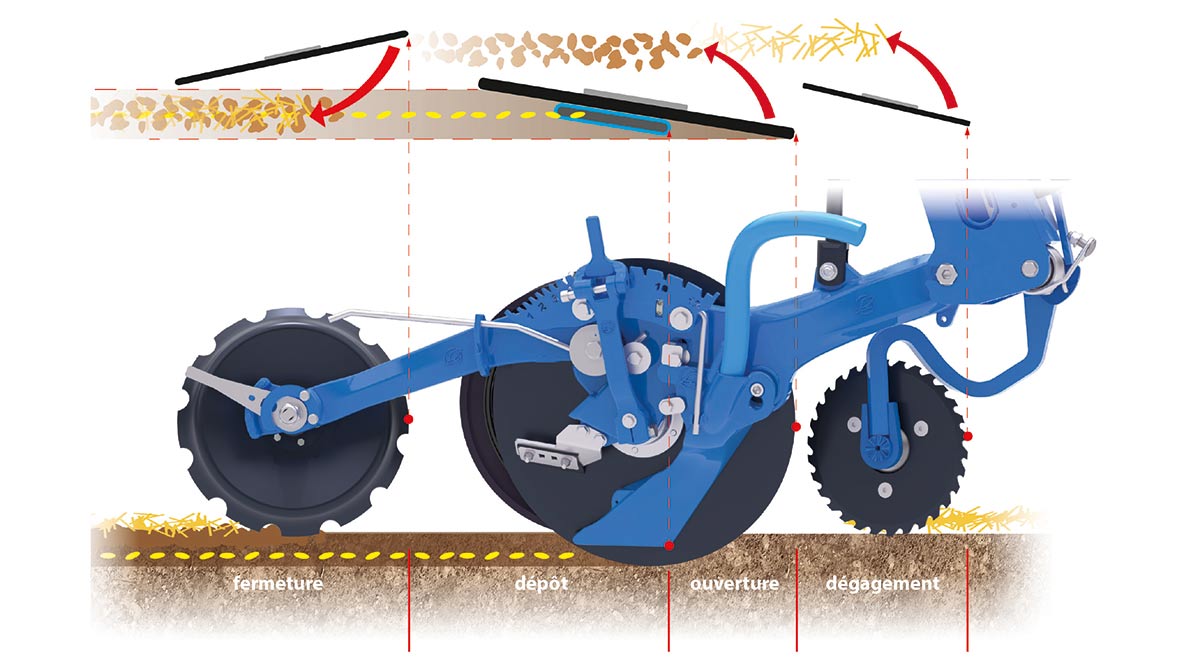 Dépose précise des semences grùce à une position de soc parfaite et à des étoiles de dégagement en option