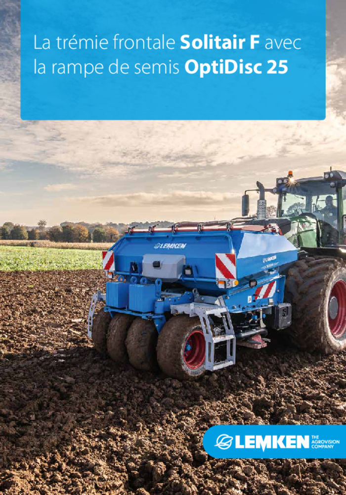 La rampe de semis solo OptiDisc 25 peut être combinée avec la trémie frontale Solitair 23+ et une herse rotative en un semoir combiné compact et maniable, pour lequel les masses sont réparties de manière optimale, même avec un plus petit tracteur. Combiné avec le semoir pneumatique Solitair 25, il forme une combinaison de semis repliable particulièrement efficace.